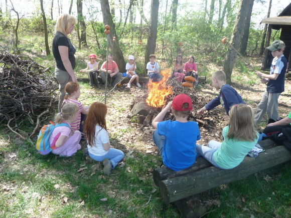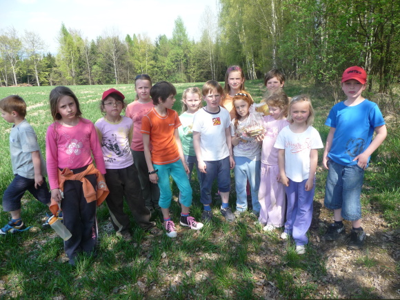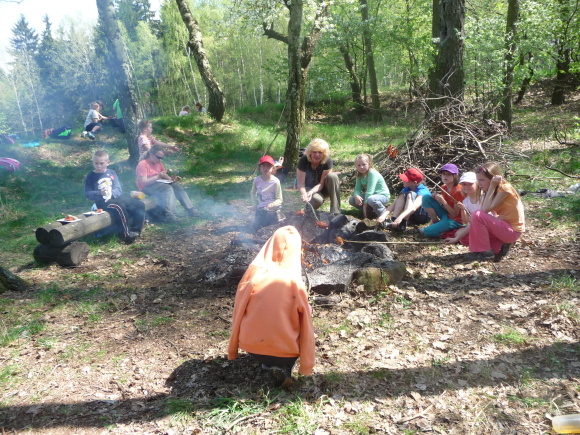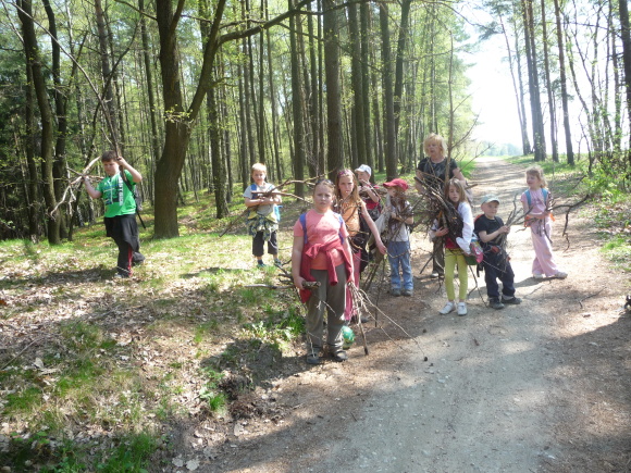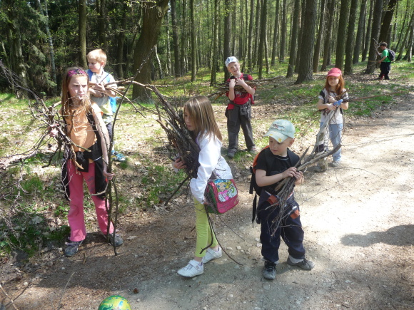 V 11 hodin všichni vyrazili se svými batůžky k věži a dále vrcholovou cestou nad Chlum k připravenému ohništi. Paní učitelky nesly uzeninu, čerstvý chléb a ostatní věci na opékání, ale hlavně velikonoční poklad. Cestou děti nasbíraly roští a zdárně, i když unaveně, jej donesly k ohništi. Vuřtíčky chutnaly, poklad se našel a rozdělily se dárečky.