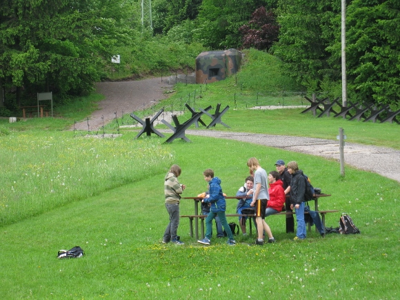 Když se umoudřilo počasí, a to se stalo ve čtvrtek 6.6., vyrazila naše třída do Krkonoš. Malým autobusem pana Strii jsme hodinu putovali do Žacléře. Před sjezdem do tohoto hornického městečka bylo první zastavení u opevnění z II. světové války. U přehledné tabule okolí městečka a prvního ŘOPíku jsme si prošli dějiny našeho státu před válkou. Pokračovali jsme pěšky, až k dělostřelecké tvrzi Stachelberg.