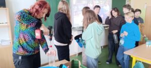 V rámci učiva o přetlaku a podtlaku si každý žák vyrobil během hodiny fyziky model plic. Jako pomůcky se hodila PET láhev, nafukovací balónky, brčka, gumová rukavice a izolepa. Během netradiční hodiny si žáci zároveň změřili jednoduchým pokusem svou kapacitu plic.