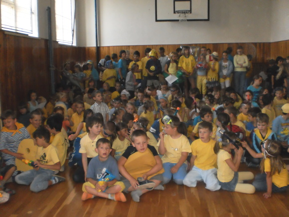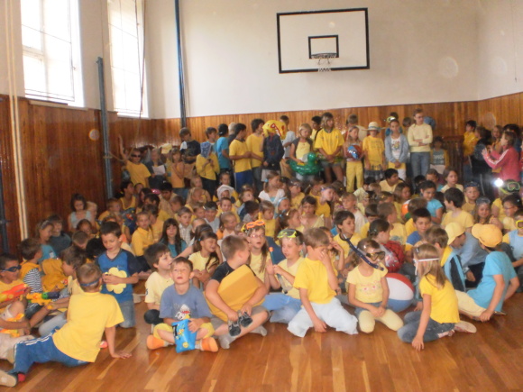 Léto už klepe na dveře, a tak jsme se na prvním stupni rozhodli jít mu trošičku naproti. Proto jsme uspořádali již čtvrtý barevný den, který byl tentokrát laděný do žluté a modré barvy. A protože k létu patří voda a koupání, přinesly si děti s sebou ještě nějakou tu pomůcku na plavání.