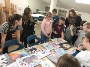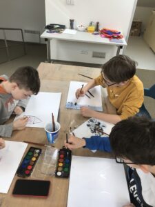 Výtvarnou výchovu si 5. třída užila v Městském muzeu Hořice, kde jsme se nechali inspirovat výstavou Cesta je trnitá, která se zaměřuje na vztah člověka k přírodě. Strávili jsme tu příjemný čas, vyzkoušeli jsme si techniku akvarelu a vzájemně si představili svá díla. Snad nám mamky odpustí barvy na oblečení.