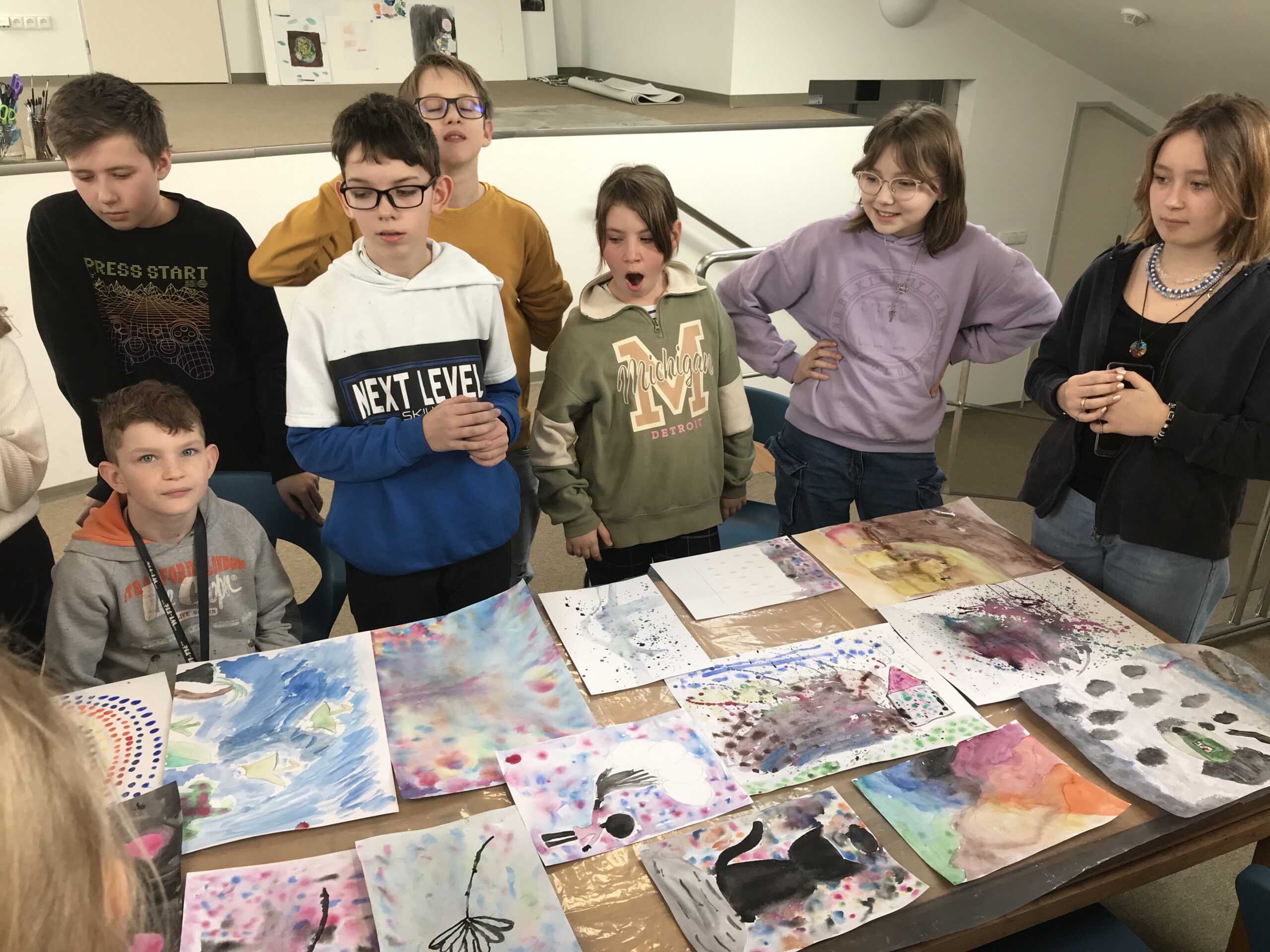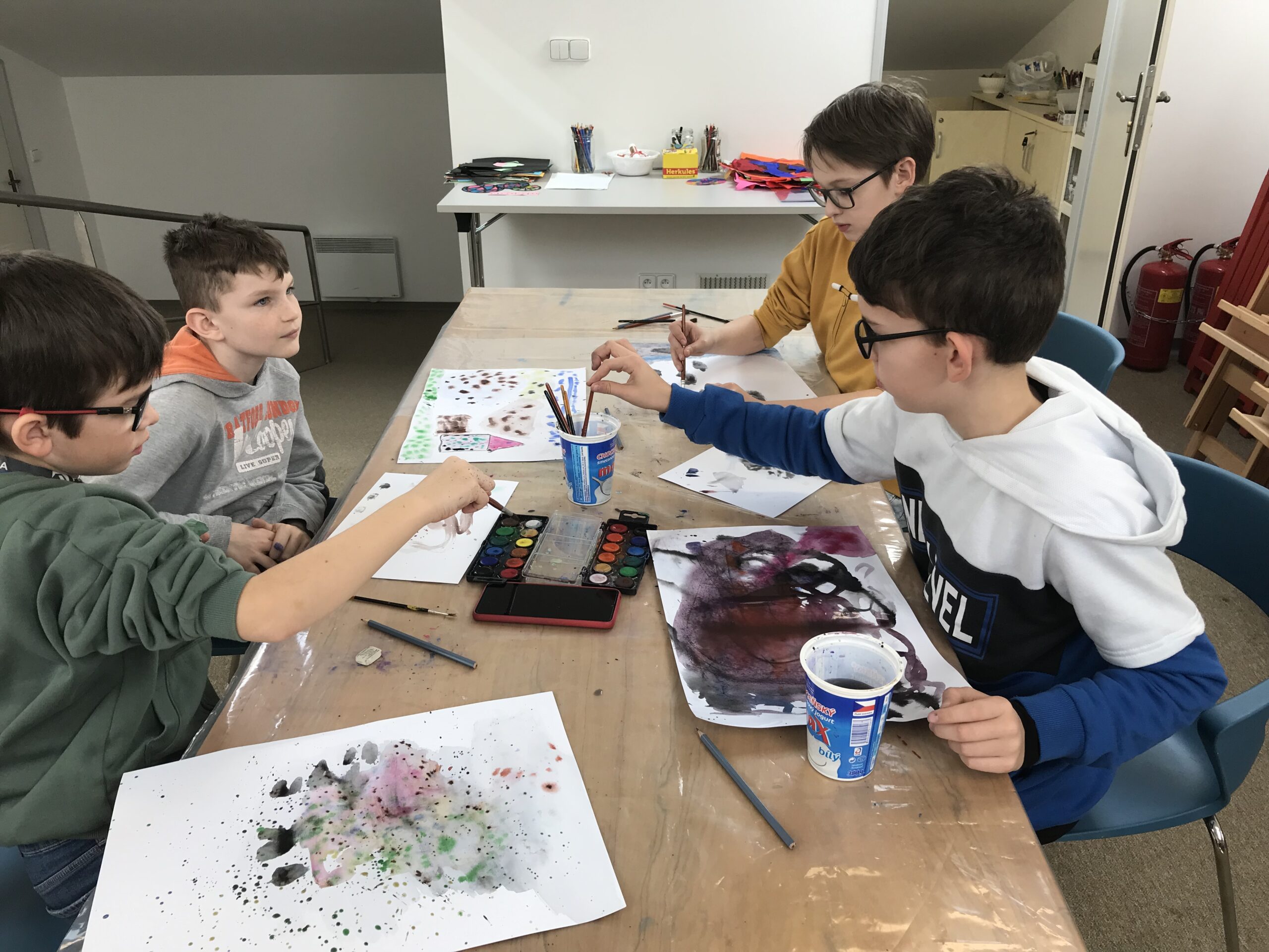 Výtvarnou výchovu si 5. třída užila v Městském muzeu Hořice, kde jsme se nechali inspirovat výstavou Cesta je trnitá, která se zaměřuje na vztah člověka k přírodě. Strávili jsme tu příjemný čas, vyzkoušeli jsme si techniku akvarelu a vzájemně si představili svá díla. Snad nám mamky odpustí barvy na oblečení.
