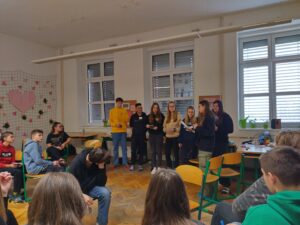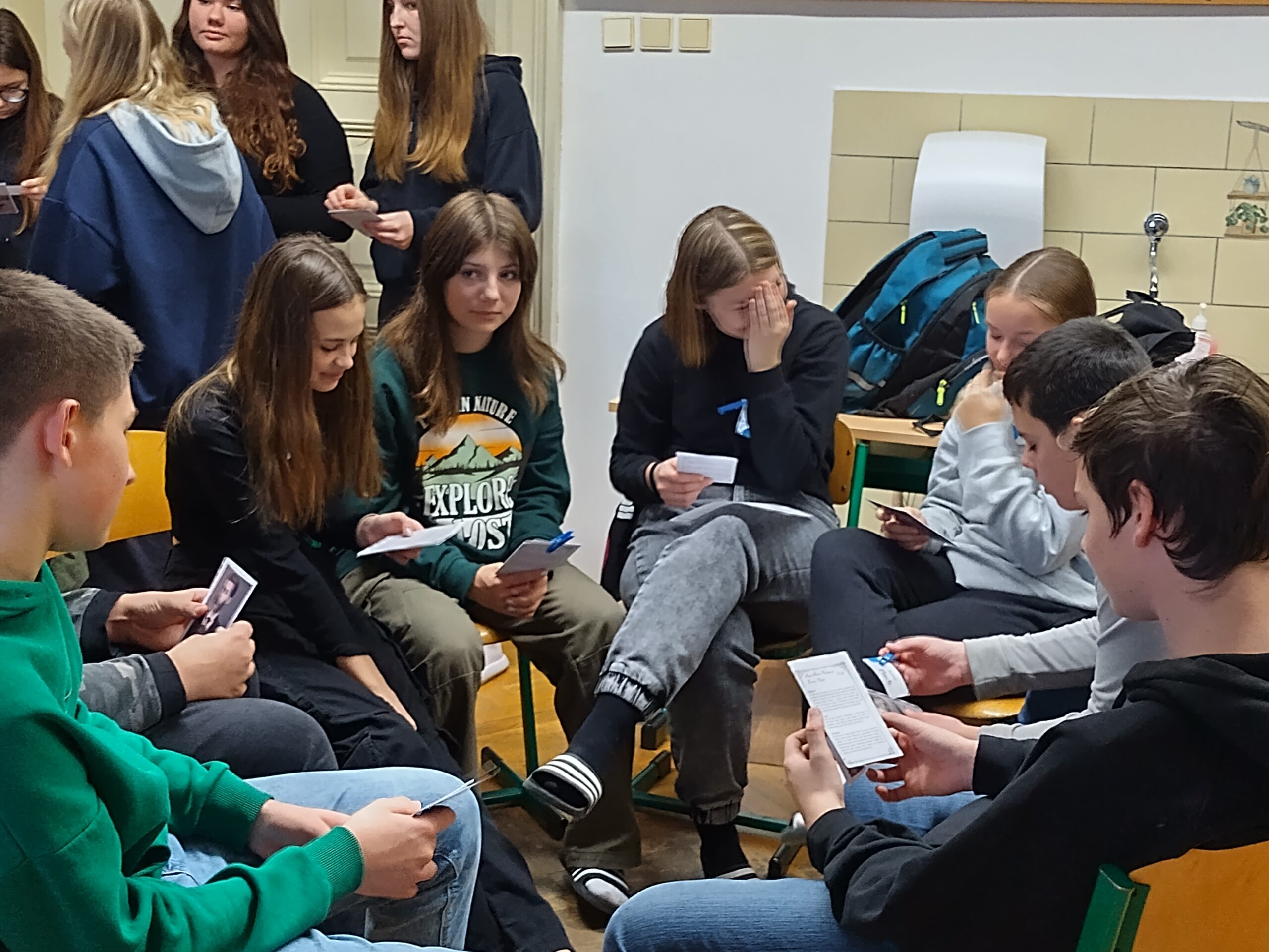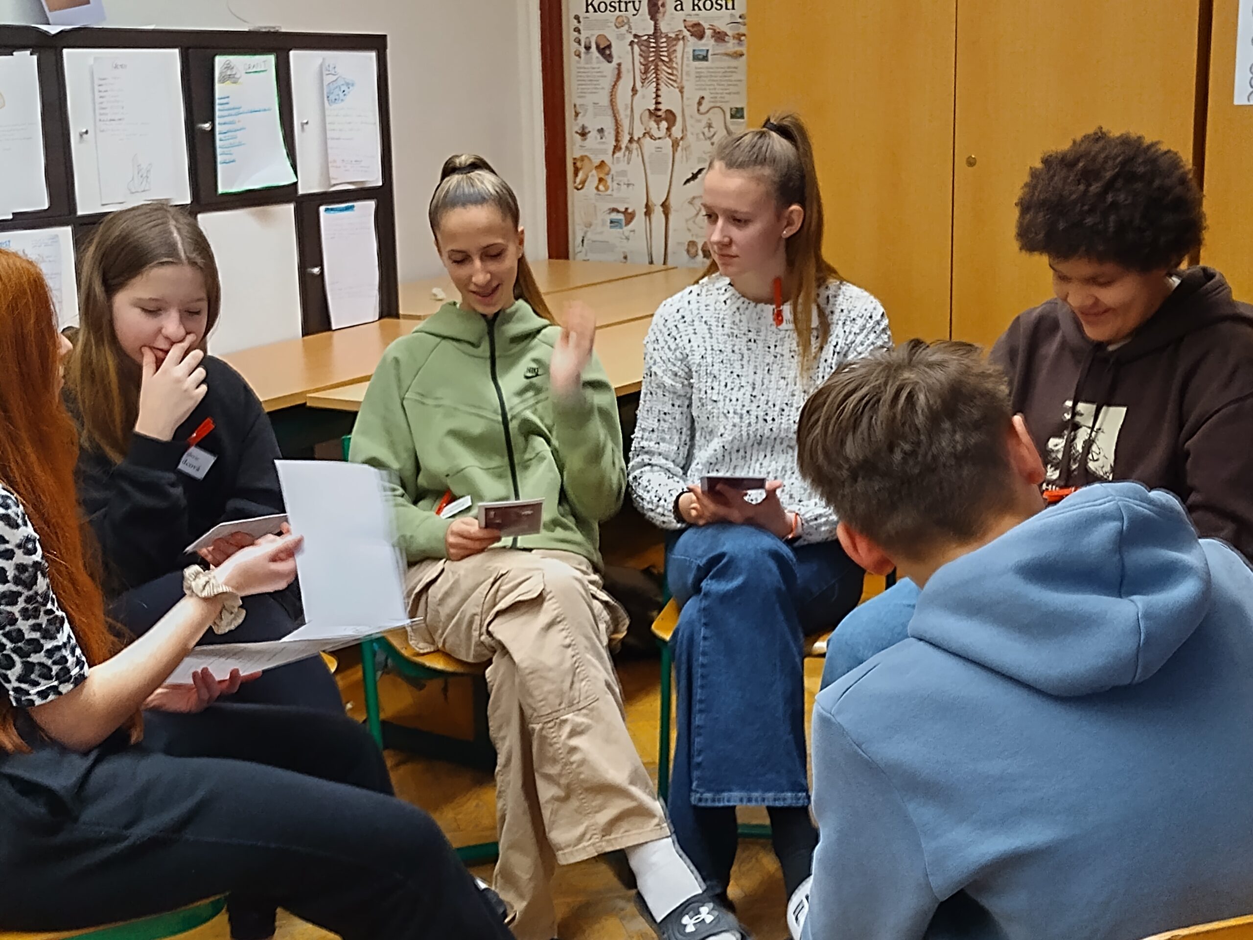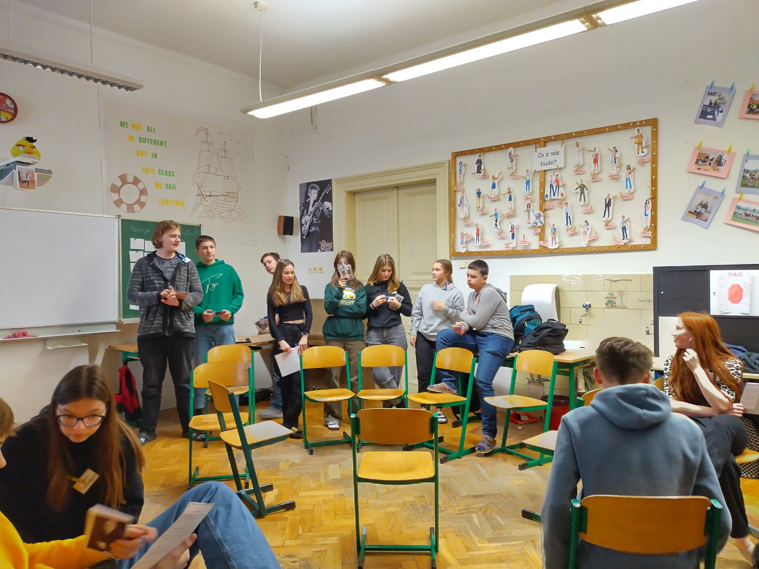 Včera naší školu navštívily paní lektorky z organizace Post Bellum, která se zabývá zkoumáním dějin 20. století prostřednictvím příběhů konkrétních osob. Žáci devátých tříd se tak mohli vžít do rolí obyvatel severomoravské vesničky Slavonice a prožít si období vzniku Československé republiky. Workshop se zaměřil na mezilidské vztahy, toleranci a problematiku česko-německo-židovského soužití. V průběhu dne žáci vystřídali řadu především skupinových aktivit, jak můžete vidět na přiložených fotografiích.