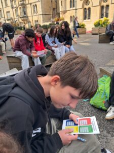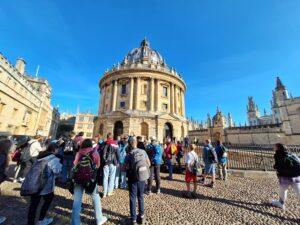 Zde začalo dobrodružství plné poznávání, angličtiny i nezapomenutelných zážitků. Průvodkyně Adéla provedla skupinu po univerzitních budovách a historickém centru města a spolu s pedagogickým dozorem školy Ivanou, Magdou a Adamem odpovídala na všetečné dotazy. Žáci navštívili Oxfordské přírodovědné muzeum, kde obdivovali kostry dinosaurů, staré zbraně i minerály. Po zábavné venkovní hře Treasure hunt byli žáci večer ubytováni v hostitelských rodinách, kde si mohli vyzkoušet každodenní život Angličanů a procvičit své konverzační schopnosti.
