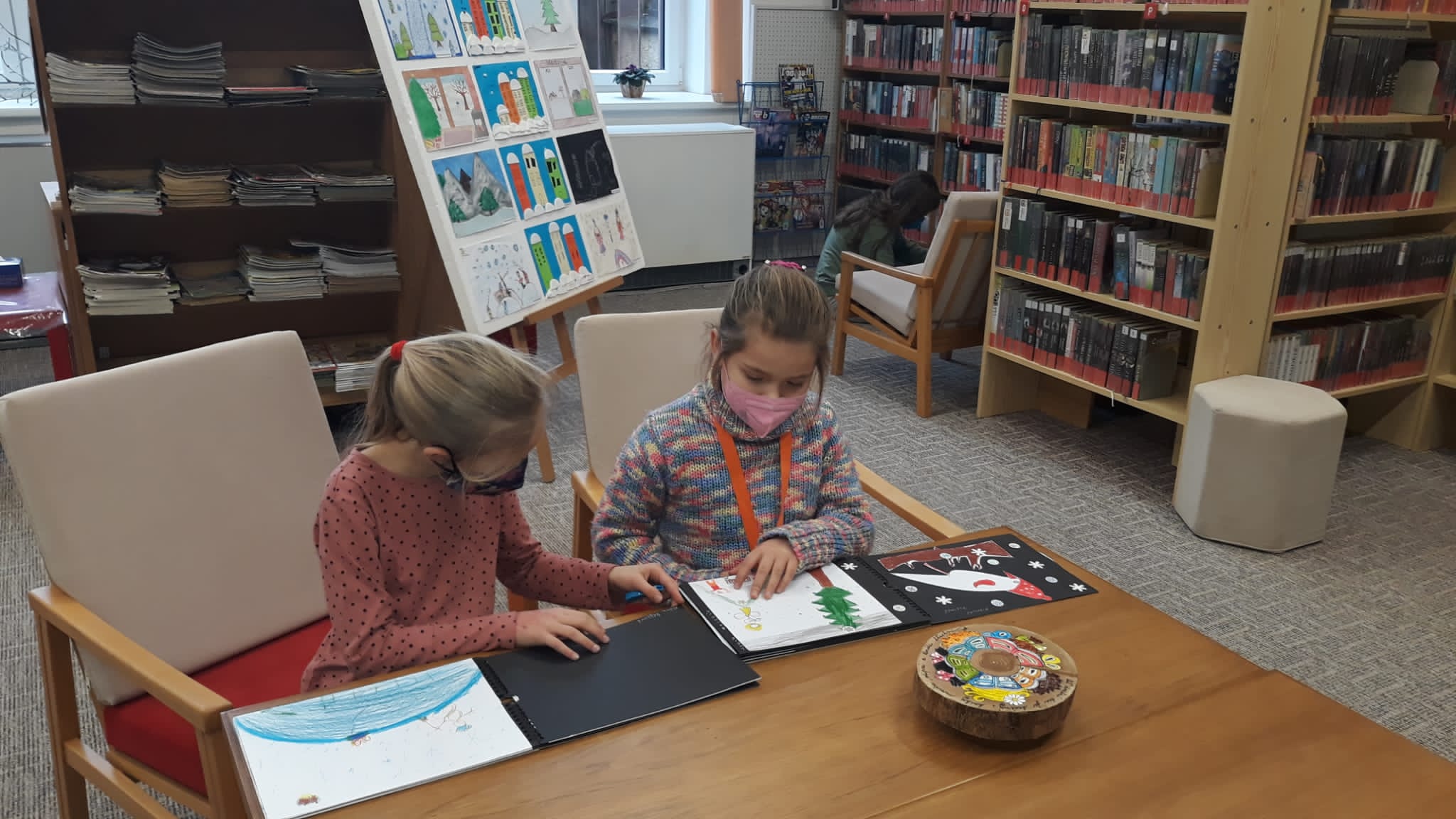 Děti ze školní družiny se zúčastnily soutěže Zasněžené Vánoce .Vytvořily knihy plné zimních obrázků inspirovaných pohádkou – Jak Vánoce málem byly na blátě – z knížky Zbyňka Malinského Vánoční pohádky. Děti za své obrázky získaly knižní odměnu a všechna výtvarná díla jsou vystavena v prostorách knihovny až do 12. února 2022.