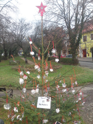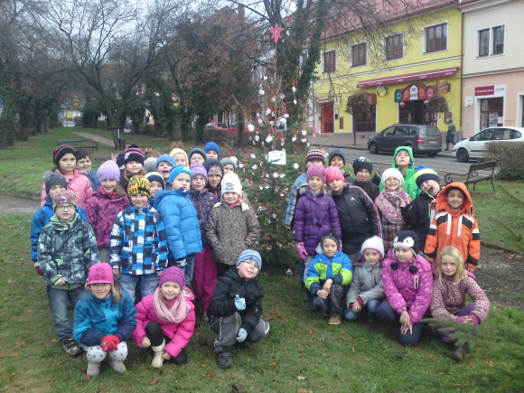 Děti z prvního stupně vyráběly ve škole ozdoby na vánoční stromeček. Ozdoby byly netradiční, vyrobené z hliníkových kalíšků po čajových svíčkách, které děti rozstříhaly na nádherné hvězdy. Žáci z 1.B a 2.A převzali ve škole ozdoby z celého prvního stupně a na náměstí u kašny s nimi krásně ozdobili připravený stromek. Jak se jim to povedlo, se můžete podívat až doposud.