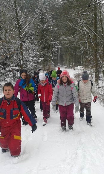 Bílý, čerstvě napadaný sníh. Ticho. Prázdno. Jen z dálky je slyšet šumění Bystřice. Do toho se občas ozve hlásek nějakého páťáka. Vydali se na druhou část svého projektu, aby se dívali a poznávali. Jsou to stopy zajíce nebo srnky? Rostou tu smrky nebo borovice? Kam zmizelo všechno to zelené listí? Co všechno se změnilo od chvíle, kdy jsme tudy procházeli naposledy? Jak vypadá krajina právě dnes, když je pokryta bílou sněhovou peřinou? Jak vlastně tohle roční období prožívali naši předci? Co z jejich zvyků jsme si uchovali do dnešních dob? A jak zimu prožíváme my samotní? Je pro nás obdobím smutným nebo radostným? Tak přesně na tyto otázky jsme hledali odpovědi.