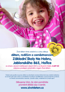 Poděkování sdružení Život dětem za finanční pomoc dětem se závažnými onemocněními.
