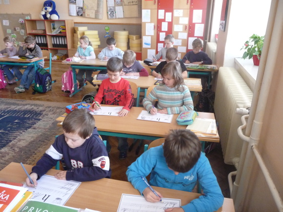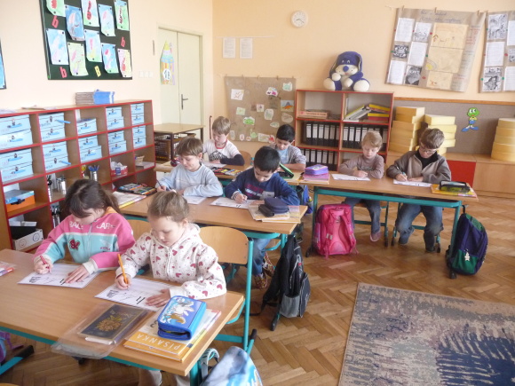 V 1.B jsme už opravdoví školáci. Pracujeme samostatně i ve skupinách. V pátek jsme pracovali v centrech a učili jsme se tak orientovat v encyklopediích.