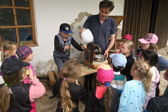 26.4. jsme dorazili na farmu do Lozic u Luže, kde se nás ujali hospodář s hospodyní. Poznali jsme, že za krajíčkem voňavého chleba, který dostaneme ke svačině, je spousta práce a cesta k němu není vůbec jednoduchá.